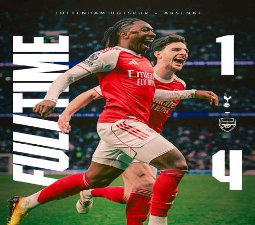 2球落后,圖多爾沒有猶豫立馬換上索蘭克、里沙利松和特爾做最后一搏;第83分鐘,斯彭斯右路一對一強行突破橫傳,里沙利松腳后跟嗑向球門,拉亞在皮球即將越過門線前將球撈回,熱刺險些追回一球。第94分鐘,馬丁內(nèi)利積極反搶斷球,馬杜埃凱順勢分球,厄德高果斷直塞,哲凱賴什頂開格雷后捅射一樣梅開二度,4:1!最終在埃澤和哲凱雙雙梅開二度下,阿森納本賽季雙殺熱刺,第一次在英超對熱刺拿下4連勝;目前槍手多賽1場暫且領(lǐng)先曼城5分。