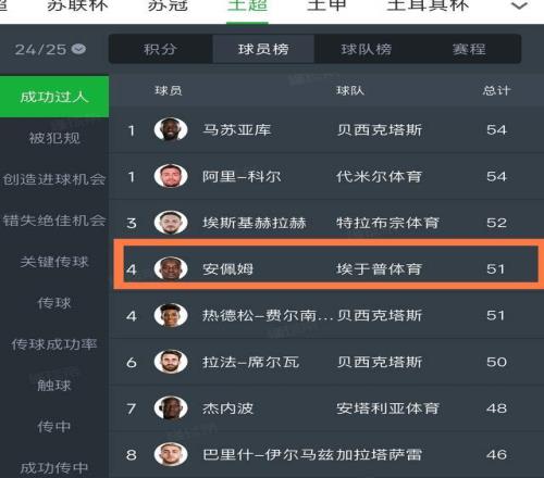 第一個,上賽季土超聯賽,安佩姆是整個土超成功過人榜第4名,整個賽季完成51次成功過人,和他并列的是1800萬歐的葡萄牙中場熱德松-費爾南德斯,他曾在英超熱刺踢過球的,你就知道安佩姆的過人能力了。雖然安佩姆只有150萬歐,但是他的價值不輸1800萬歐英超級別的球星。