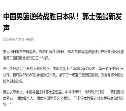 此次戰(zhàn)勝日本隊,不僅挽回了中國男籃的風評,也讓郭士強的風評得到扭轉(zhuǎn)。
