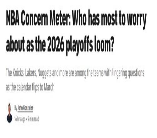 在常規(guī)賽進入沖刺階段,季后賽很快就將到來之際,美媒《cbssports》根據(jù)現(xiàn)狀評選出8支最該焦慮的球隊,并按照10分制給出具體分數(shù),其中火箭第7騎士第6,湖勇兩隊攜手殺入前三,快船隊焦慮指數(shù)爆表高居第一。