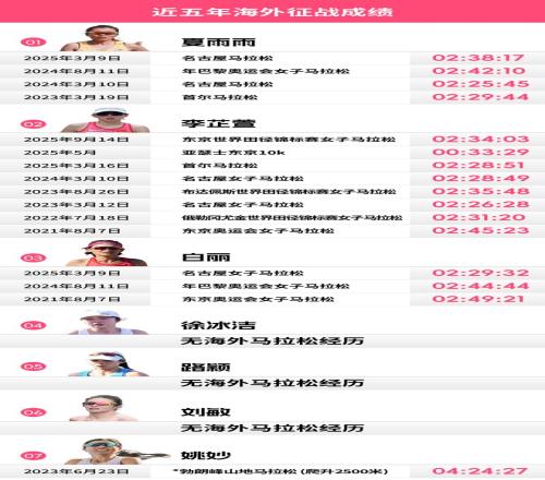 3月1日,年度大滿貫首戰——東京馬拉松即將在東京都廳鳴槍開跑。中國共有12位精英選手入圍特邀名單,其中包括路穎、徐冰潔、白麗、夏雨雨、李芷萱以及“路野雙修”的姚妙等6名女將。此外,注冊于北京隊的劉敏也將前往東京與大部隊會合。