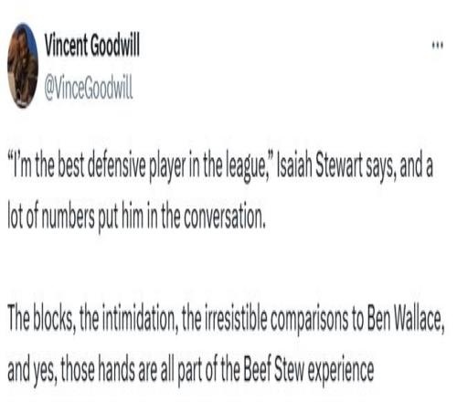古德維爾透露:“斯圖爾特很清楚自己的防守數據,也會密切關注聯盟里其他球員在同類指標上的表現。”