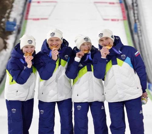 跳臺滑雪團體斯洛文尼亞代表團衛(wèi)冕冠軍