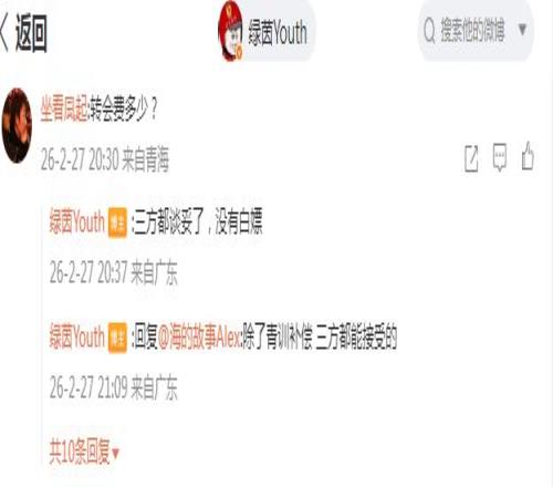 這也就是為何一聽到是0轉(zhuǎn)會費,很多球迷都批評海港的原因。那么,為了挖到楊黔東,海港到底有沒有給錢?博主綠茵Youth表示這次交易三方都談妥了,海港這次沒有白嫖(下圖)。
