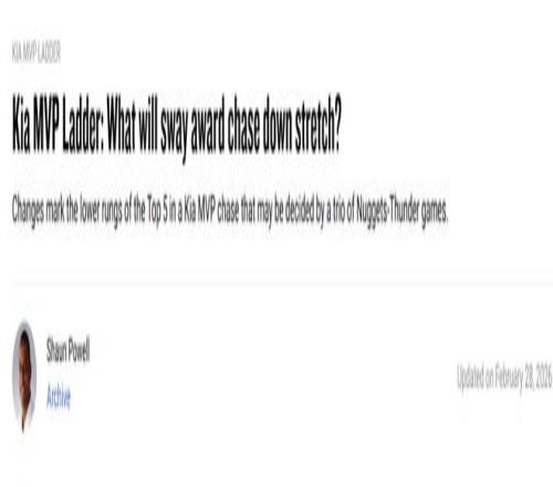 NBA官網MVP榜單更新!SGA持續力壓約基奇高居榜首,坎寧安超東契奇強勢殺入前3,火媒為杜蘭特無緣前10公開鳴不平。