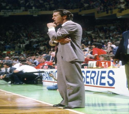 如果說最初的形象是為了匹配“表演時刻”的浮華,那么萊利用持續的勝利和卓越的執教,將這種風格升華為一種領導力的象征。他帶領湖人在1982、1985、1987和1988年四奪總冠軍,打造了80年代最具觀賞性的球隊之一。
