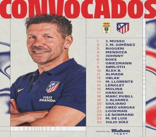 北京時間明天凌晨4點,馬競將迎來西甲第26輪客場對陣皇家奧維耶多的比賽,賽前,馬競官方公布了球隊的大名單,其中格列茲曼、小蜘蛛領銜,尼古拉斯-岡薩雷斯、巴里奧斯仍然傷缺。