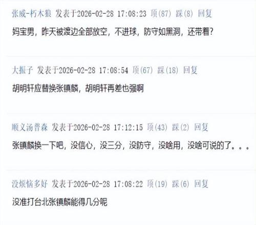 ——張鎮(zhèn)麟換一下吧,沒(méi)信心,沒(méi)三分,沒(méi)防守,沒(méi)啥用,沒(méi)啥可說(shuō)的了