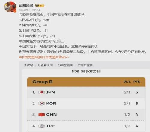 放眼下一場即3月1日中國男籃在菲律賓馬尼拉對陣中國臺北隊的比賽,出戰(zhàn)12人大名單不變,胡明軒和趙嘉義依然落選。