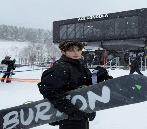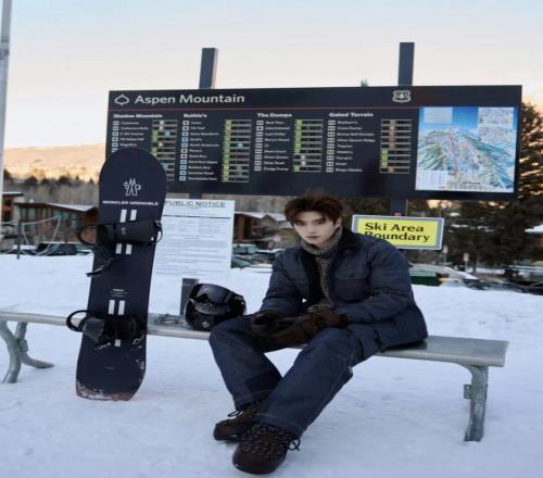 張樂康身著牛仔雪服,內搭針織毛衣,隨性又不失質感。同色系棕色雪靴與手套相互呼應,將冬日運動穿搭的舒適與格調完美融合。