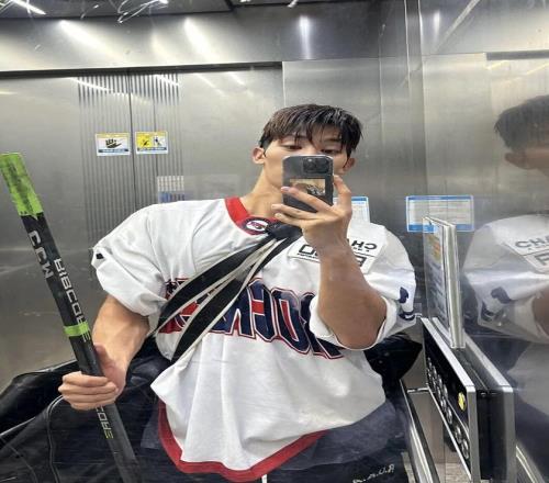 樸元彬與好友同行,簡約黑色外套內搭中式盤扣上衣,沉穩中藏著東方雅致。下身搭配隨性牛仔褲,利落又自在,于冰場中自成格調。