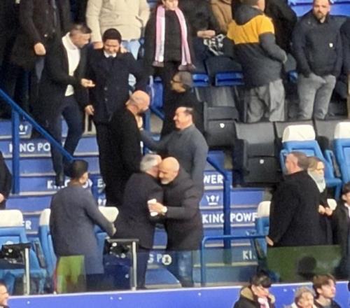 造訪老東家,馬雷斯卡現(xiàn)身萊斯特城對(duì)陣諾維奇的比賽現(xiàn)場
