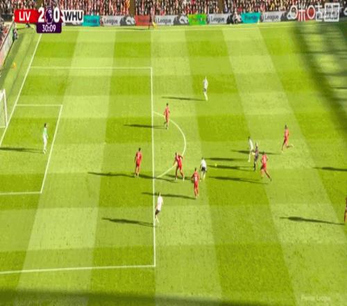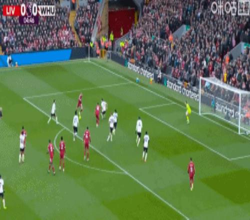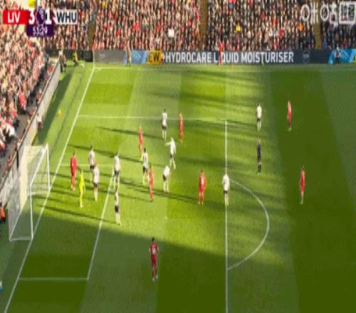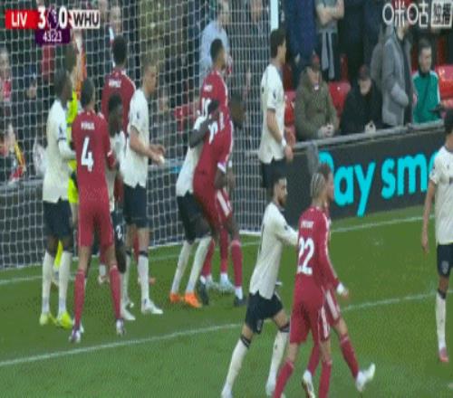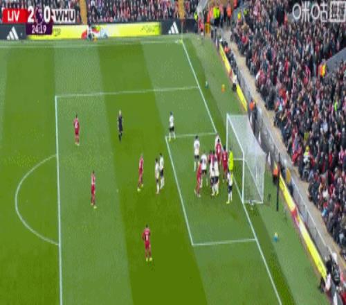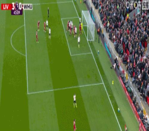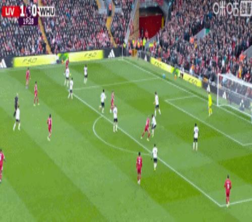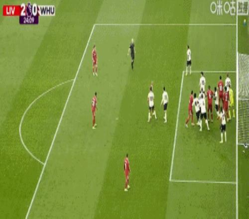 第24分鐘,索博斯洛伊開出角球,范戴克頭球建功,利物浦2-0西漢姆聯