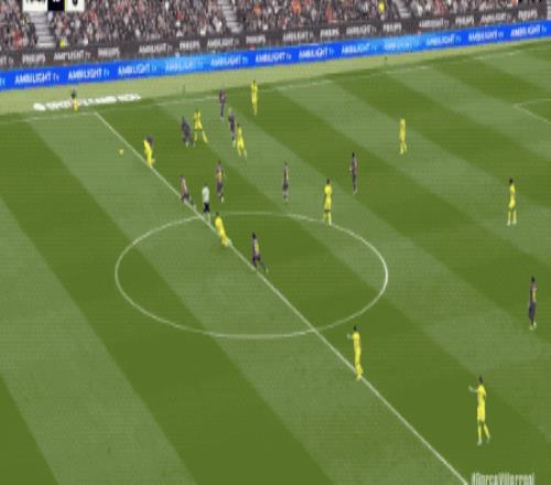 接下來的15分鐘,場面相對平靜,兩隊的防守都密不透風,直到比利亞雷亞爾出現失誤。