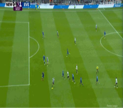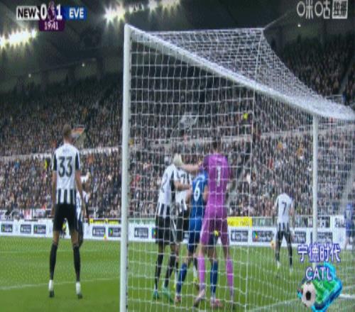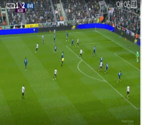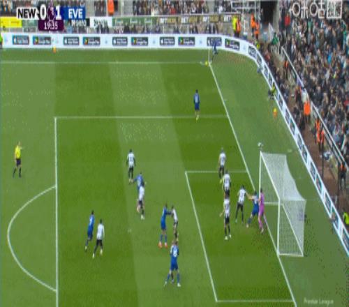 第20分鐘,布蘭斯韋特頭球率先得分,埃弗頓1-0領先紐卡