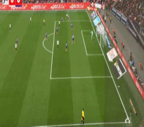 第67分鐘,貝克爾凌空掃射破門,美因茨客場1-0勒沃庫森