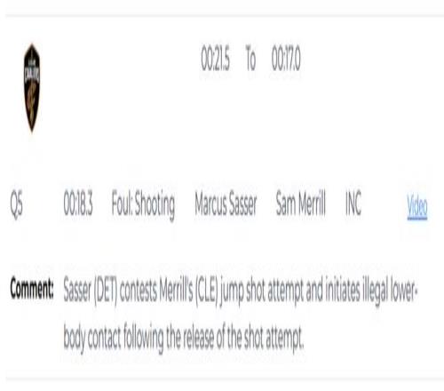 第四次是漏判,發(fā)生在距離加時(shí)賽結(jié)束還有18.3秒,薩瑟在梅里爾三分跳投出手后,主動(dòng)用下肢進(jìn)行了非法接觸,干擾了他的投籃。這是一次漏吹的防守犯規(guī),梅里爾本該獲得三次罰球機(jī)會(huì),有望扳平比分。活塞獲利,騎士吃虧。