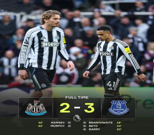 相比之下,紐卡斯?fàn)柭?lián)的夜晚則顯得苦澀。主場迎戰(zhàn)埃弗頓,紐卡兩度扳平,卻在最后時(shí)刻再度失守,2-3告負(fù)。