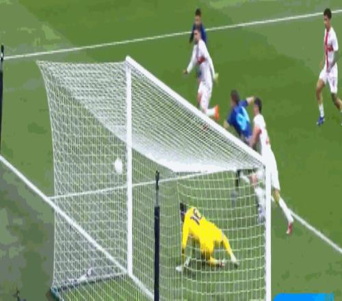 第79分鐘,迪烏夫射門,皮球擊中后衛出了底線